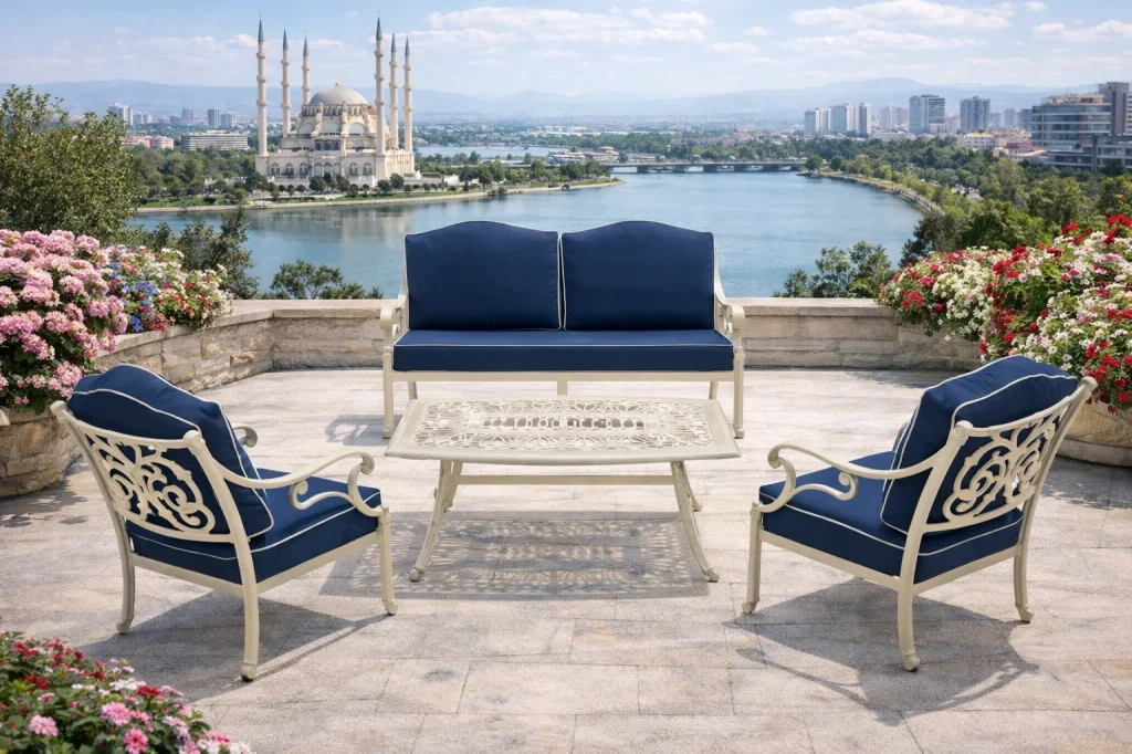 Klasik ferforje estetiğini modern konforla buluşturan CNR Döküm Mini Oturma Takımı, bahçe ve açık alanlar için özel olarak tasarlandı. Döküm ferforje dayanıklılığı, su itici kumaşın pratikliği ve konforlu sünger dolgularıyla hem şık hem uzun ömürlü bir oturma deneyimi sunar.