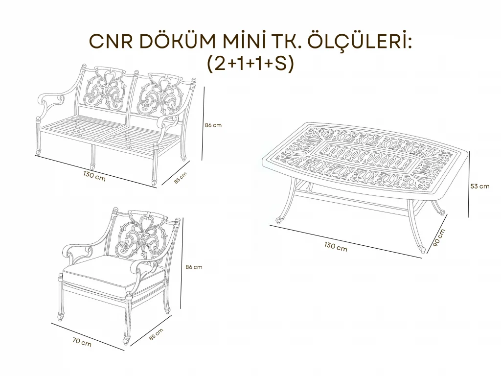 CNR DÖKÜM MİNİ TAKIM (2+1+1+SEHPA) – Zarif Tasarım ve Üstün Dayanıklılık