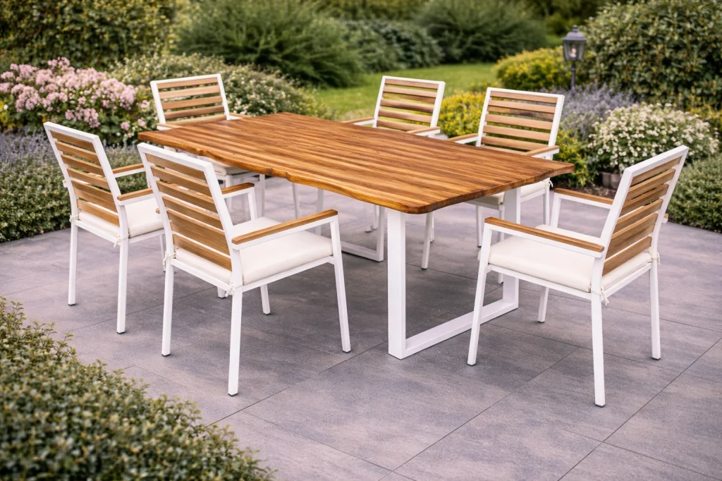 %100 Doğal Masif Ahşap: Masa tablası ve sandalye sırtlıklarında kullanılan gerçek masif ağaç, mekana sıcaklık kazandırır.