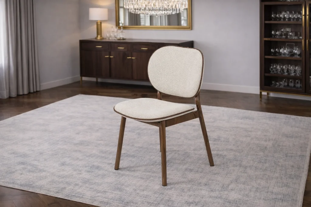 Doku ve Renk Uyumu: Açık renkli, silinebilir ve leke tutmaz döşeme kumaşı ile ceviz tonlarının birleşimi, doğal ve sade bir atmosfer yaratır.