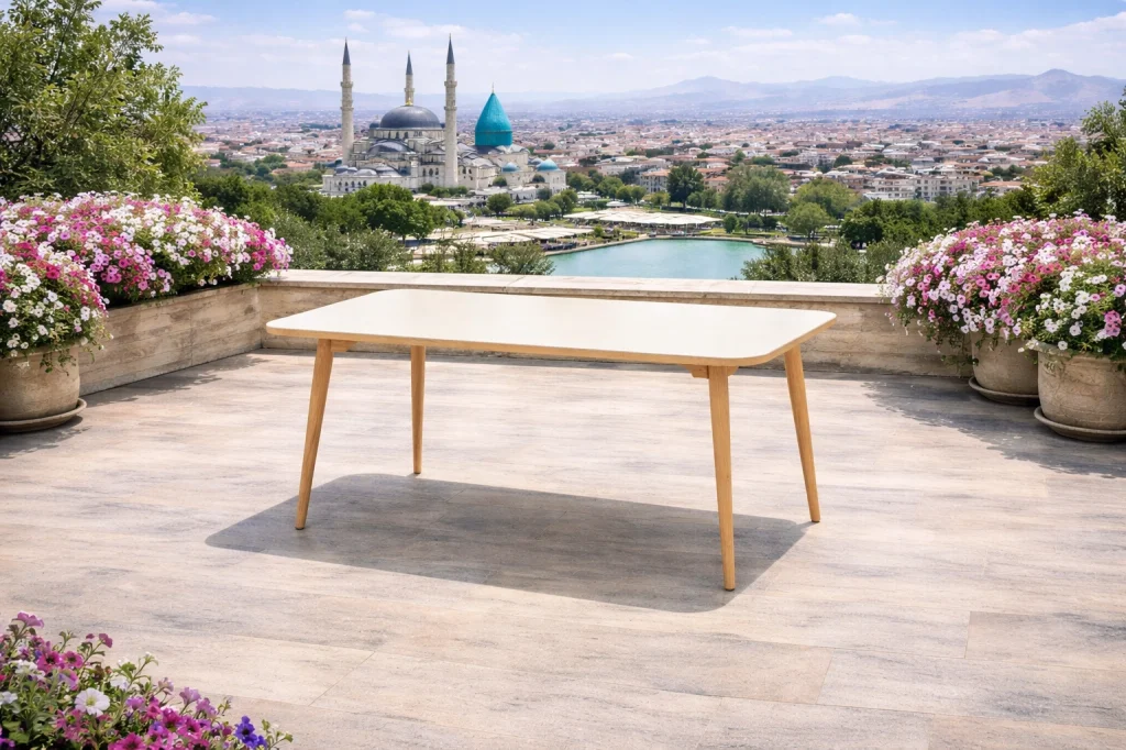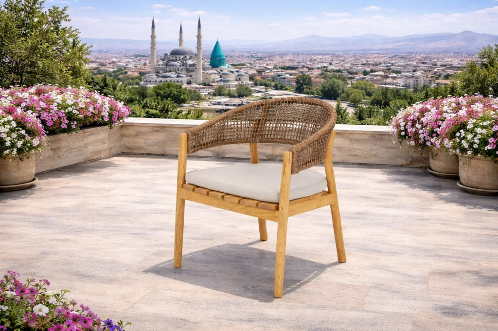 Masif Ahşap İskelet: Tüm takımın gövdesi dış mekan şartlarına yüksek dayanıklılık gösteren sağlam masif ahşaptan üretilmiştir.