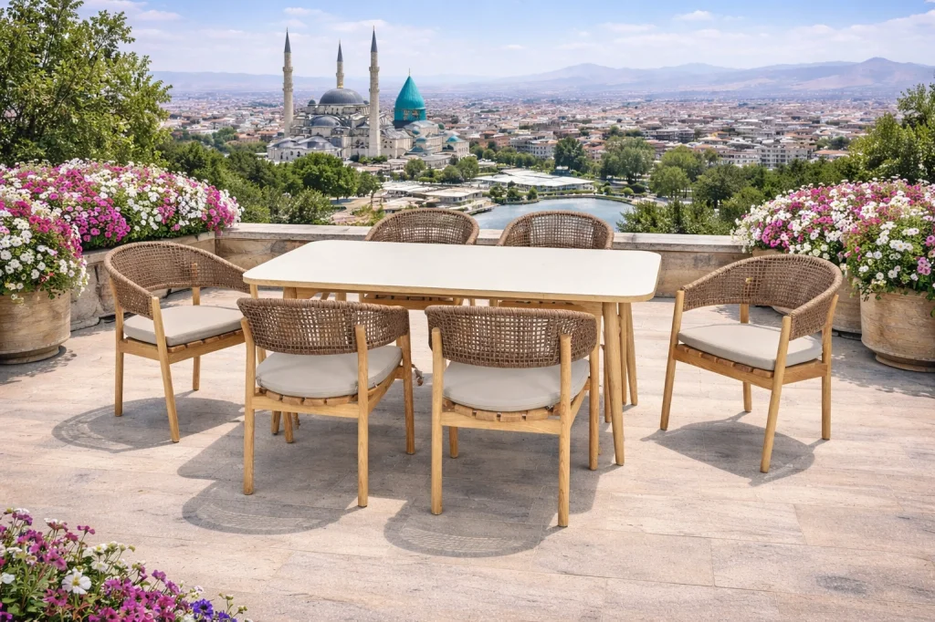 Dış Mekan Kumaşı: Su itici ve leke tutmaz kumaş kılıfları sayesinde günlük kullanımda büyük pratiklik sağlar.