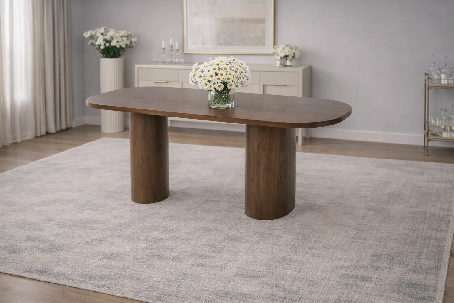 Masif Görünümlü Silindirik Ayak: Masa ayağında kullanılan silindirik blok tasarım, güçlü bir duruşla modern dekorasyon anlayışını birleştirir.