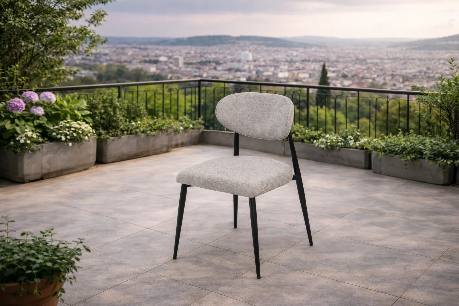 Ergonomik Döşemeli Sandalyeler: Sırt ve oturum kısmı döşemeli yapısıyla üst düzey konfor sunan sandalyeler, şık metal ayaklarıyla tasarıma bütünlük katar.