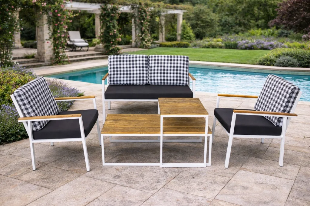 Stil Fonksiyonel Sehpalı Takım (Kareli) – Modern Geometri ve Doğal Konfor