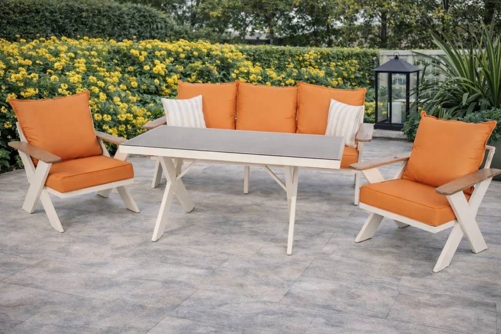 Modern alüminyum tasarımıyla hem balkonunuz hem de bahçeniz için uzun ömürlü ve konforlu bir yaşam alanı sunan bu özel takım; kalite, estetik ve işlevselliği bir araya getiriyor.