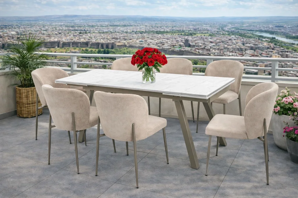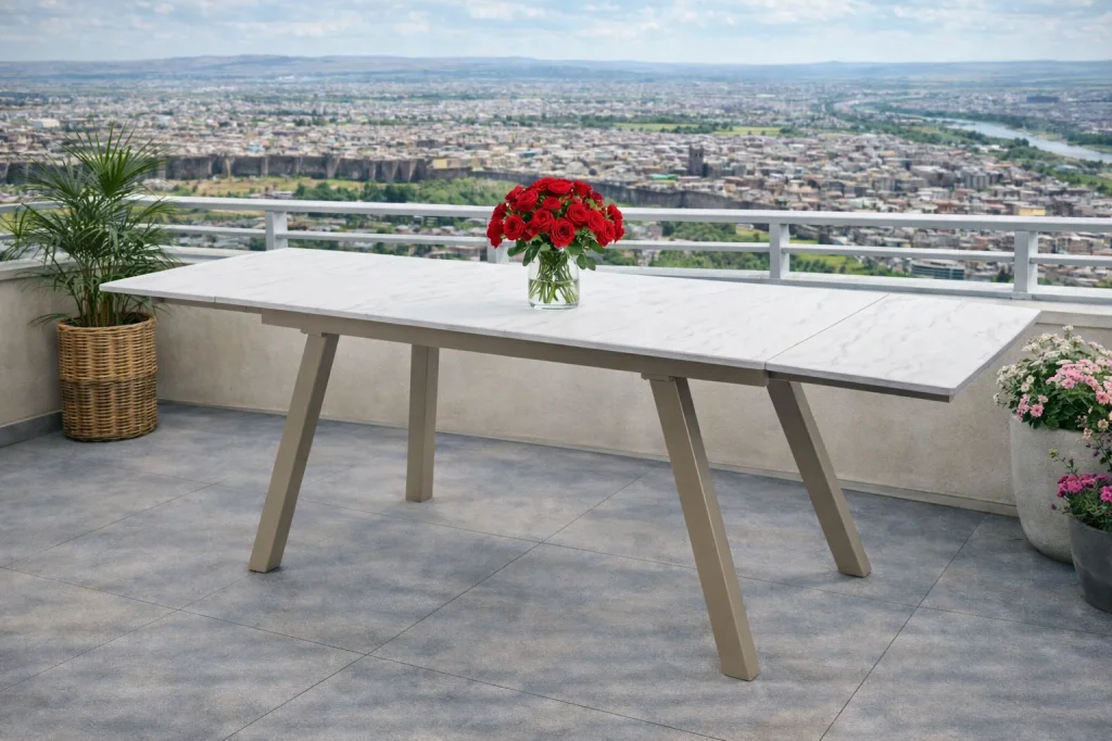 Modern yaşam alanlarına şıklık ve kullanım kolaylığı kazandıran ZENIT / Dualis Açılır Masa Takımı, geniş aile yemekleri ve misafir ağırlamaları için özel olarak tasarlandı.