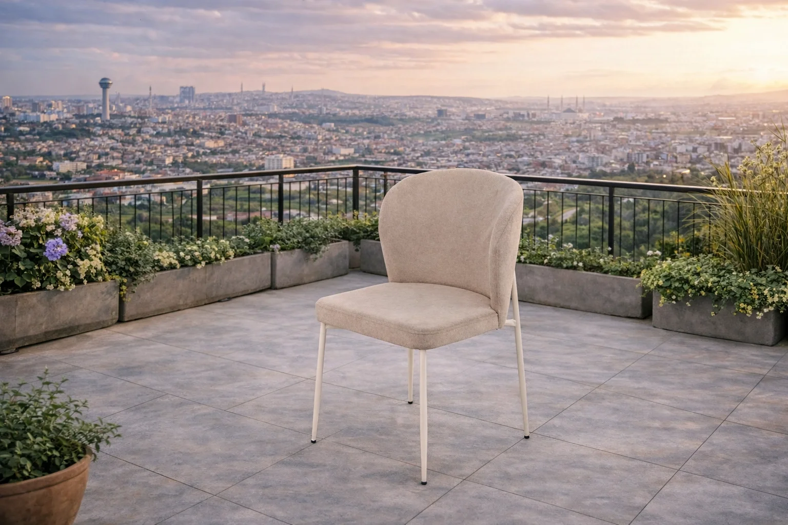 Üst Düzey Konforlu Sandalyeler: Sırt ve oturum kısmı döşemeli olan 4 adet sandalye, uzun süreli oturumlarda ergonomik destek ve şıklığı bir arada sunar.