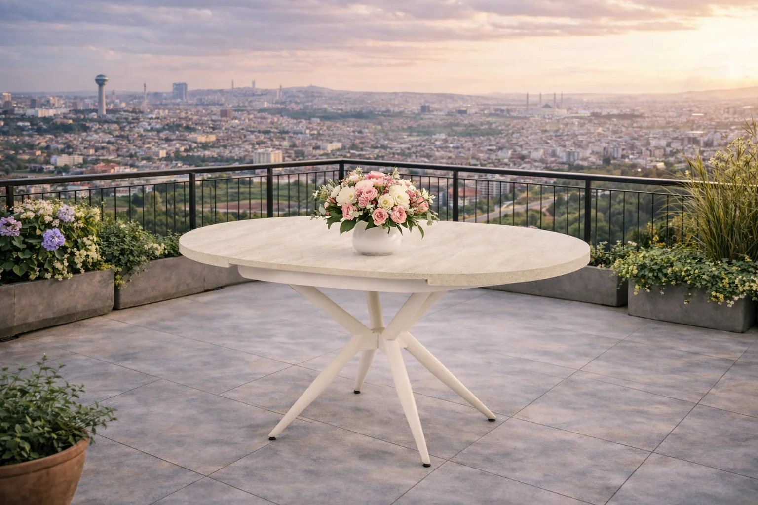 Açılabilir Yuvarlak Masa: İhtiyaç halinde genişleyerek misafirlerinizi rahatça ağırlamanızı sağlar; kapalıyken minimal ölçüleri sayesinde dar alanlarda konfor sunar.